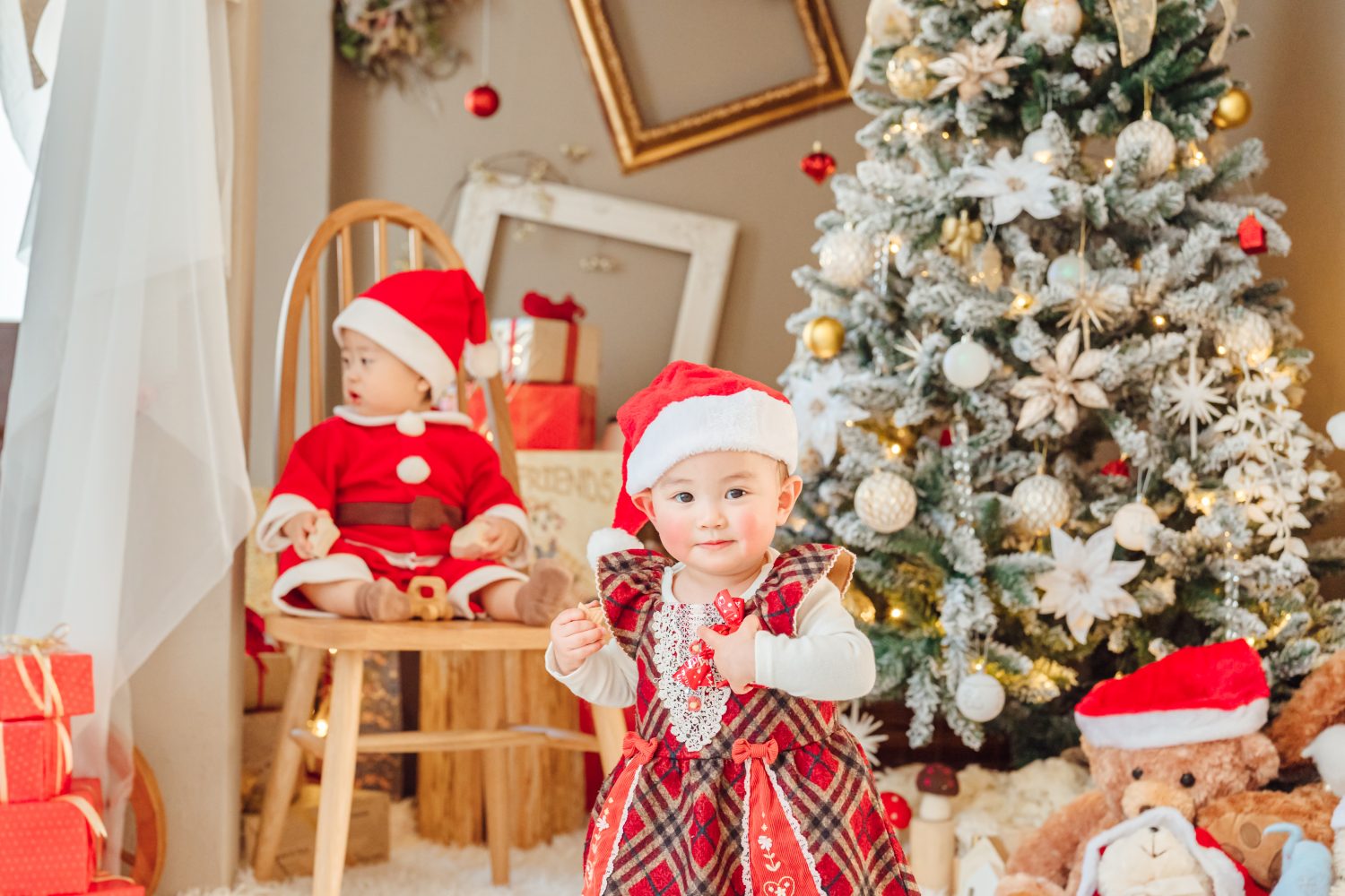 2024.12 studio クリスマス撮影会 クリスマス当日、1日だけの特別セット スタジオにてクリスマス撮影会を開催しました𓂃𓈒𓏸 かわいいサンタさんが遊びに来てくれたり、もらったプレゼントを見せてくれたり。暖かい時間をありがとうございました♡一部のお写真をご紹介です。 2025年は12/21,22に開催予定、公式LINEにてご予約受付中です。